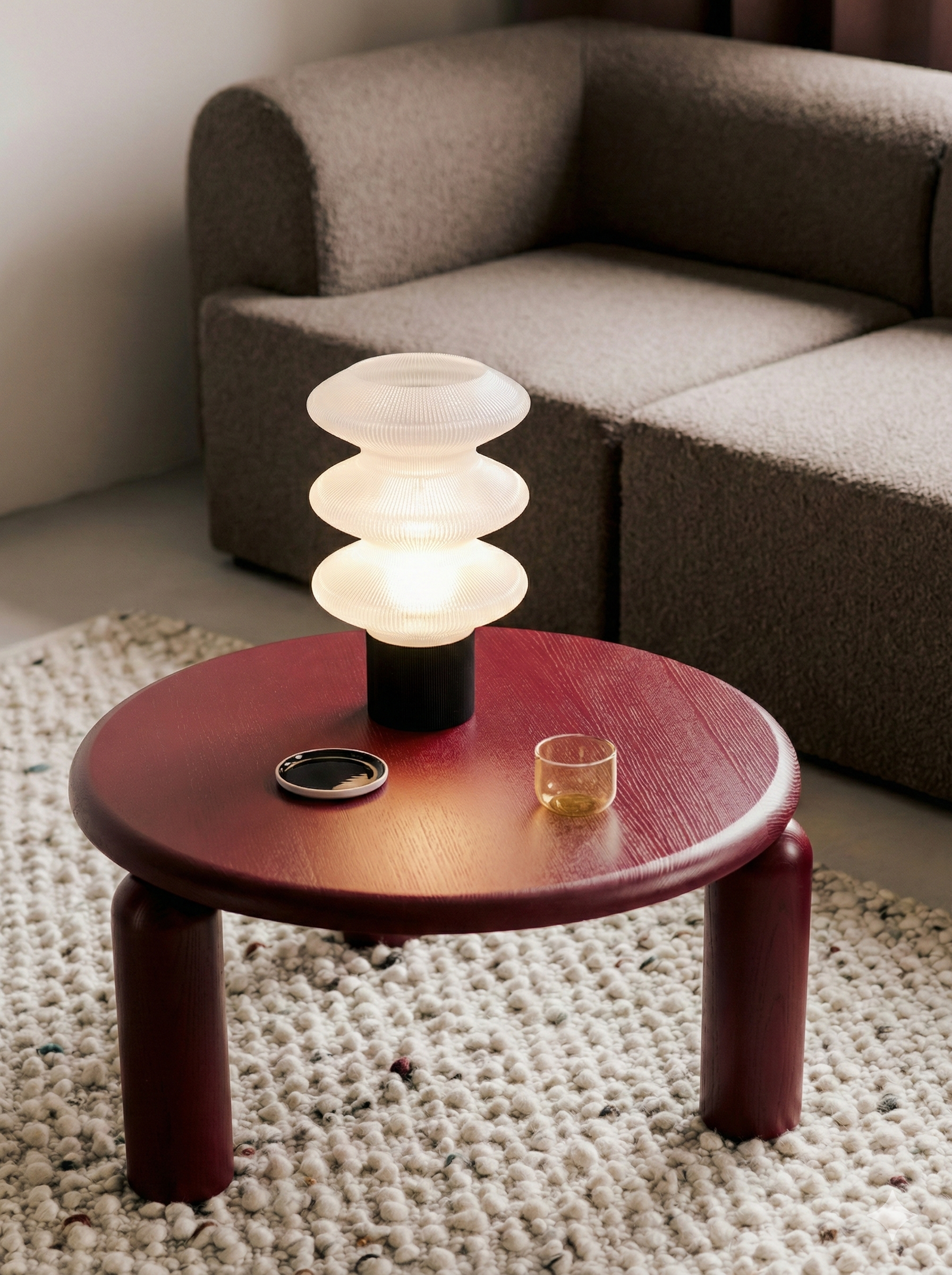 3D printed from eco-conscious, plant-based PLA, CURVA celebrates sustainable design without compromising on refinement. The clear white glows with a pure, diffused light that feels weightless and serene — creating a mood that is calm, airy, and quietly restorative, bringing a sense of clarity and effortless elegance to the space.